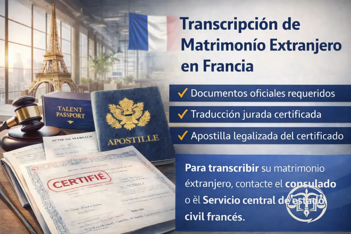 La transcripción de un contrato matrimonial extranjero en Francia es un paso esencial para que su unión sea reconocida legalmente en territorio francés. Tanto si se trata de una pareja franco-extranjera como de dos ciudadanos extranjeros establecidos en Francia, este procedimiento administrativo exige una conformidad total de los documentos, especialmente en materia de traducción jurídica.